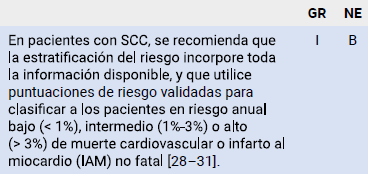 En los pacientes con SCC, los resultados de los estudios no invasivos e invasivos por sí solos no son suficientes para estratificar de forma correcta el riesgo cardiovascular individual anual, ni el riesgo futuro de muerte cardiovascular (CV) o IAM no fatal.