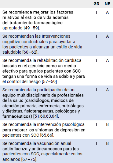 La rehabilitación cardiaca tiene un lugar fundamental en el tratamiento del SCC y la prevención de eventos, al mejorar la capacidad funcional, reducir el riesgo cardiovascular, brindar un manejo integral y ofrecer apoyo psicosocial a los pacientes (151).