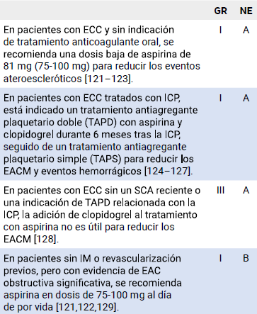 El objetivo principal del tratamiento farmacológico en pacientes con síndrome coronario crónico es el control de los síntomas, la prevención de eventos ad- versos cardiovasculares y el manejo integral de las comorbilidades, todo ello de manera individualizada y optimizada para cada paciente (27). A través del control de los factores de riesgo, la disminución de la carga isquémica y la prevención de complicaciones trombóticas (27).