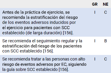 A los pacientes con historia de enfermedad coronaria de alto riesgo o isquemia resistente se deberá prohibir los deportes de competición, sin embargo, una vez determinado el umbral isquémico se podrán insertar en programas de ejercicio que no sobrepasen este límite (155).