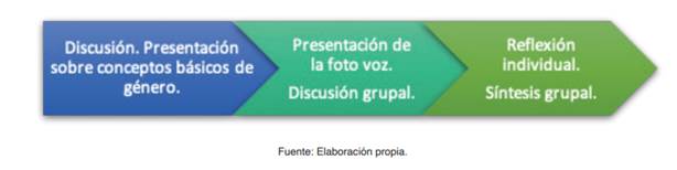 Durante el I semestre de 2019, decidí adaptar la foto voz como forma de crear espacios más abiertos y equitativos para la discusión en una clase de la Sección de Comunicación de la Escuela de Estudios Generales de la Universidad de Costa Rica. En esta, uno de los ejes temáticos era Género: feminidades y masculinidades. El programa de la unidad se desarrolló en tres sesiones, de la siguiente forma: