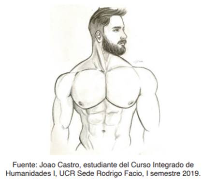 El proceso fue interesante porque algunos estudiantes5 decidieron hacer dibujos en lugar de tomar fotografías. Uno de esos fue “Macho” (ver figura 3), que de inmediato trae a la memoria las ilustraciones del artista Tom de Finlandia; cuando se lo mencioné, el estudiante dijo: “sí, yo me inspiré en sus dibujos”.