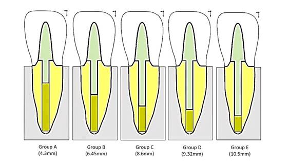 A model with a 1 mm high coronal remnant from the cemento-enamel junction was created. Five groups of models with different lengths were established.