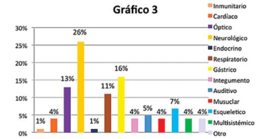 Gráfico 3: Se realiza una división de rangos que corresponden a los sistemas más afectados por la PCI de los niños y niñas del estudio.