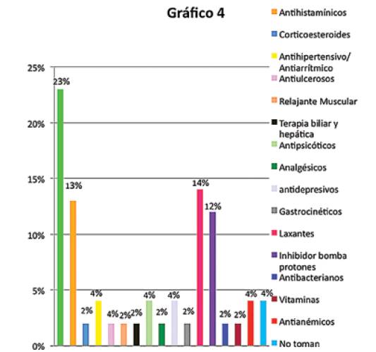 Gráfico 4: División de rangos según los medicamentos más utilizados por los niños y niñas con PCI del estudio