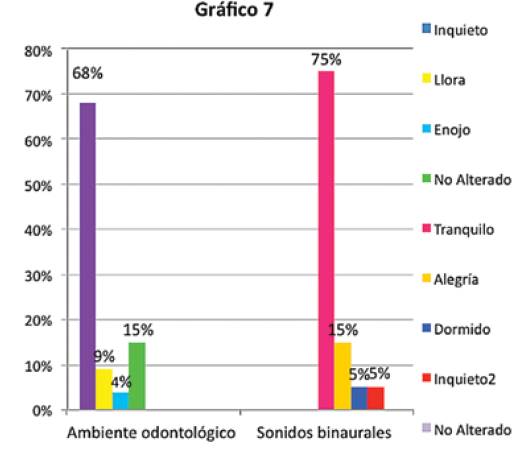 Se describen reacciones negativas con el uso de los sonidos del ambiente odontológico (inquietud, llanto y enojo).