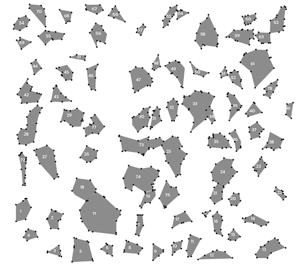 Gap size and isolation: Gap edge and gap polygon were determined using ARC/VIEW 3.2 software (Figure 2). The gap size (GS) and average distance (d i ) between the centre of each gap and other gaps centres provides a measure of gap isolation (I) (eq. 3), where g equals the gap number from Rousseau and VanHecke (1999).