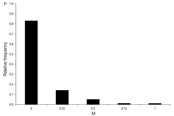 Figure 5 Species mingling distribution (M) of the total gaps surveyed in the Ávila Viejo community, Canton Loreto.