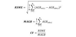Where AGB est,i and AGB obs,i are the estimated and observed aboveground biomass for a tree i, respectively, and n is the total number of trees.