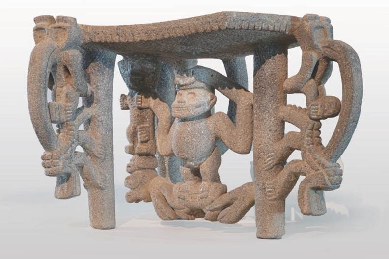 Fig. 15 Metate ceremonial de panel colgante, región central, Costa Rica, 200 - 300 e. c. Colección y fotografía cortesía de The New Orleans Museum of Art: compra del museo a través del Fondo de Subastas de Museos de 1965, 67.34. / Fig. 15. Flying panel ceremonial metate, central region, Costa Rica, 200 - 300 c. e. Collection and photograph courtesy of The New Orleans Museum of Art: museum purchase through the 1965 Museum Auction Fund, 67.34.