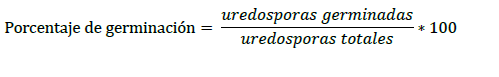 Se consideraron como uredosporas germinadas aquellas que su tubo germinativo poseía el doble de longitud del tamaño de la uredosporas.