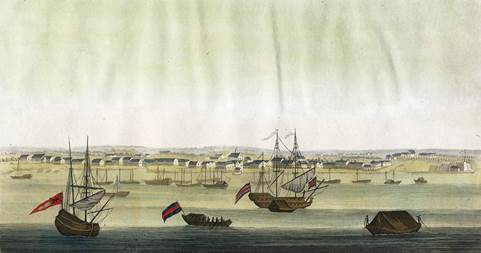 Figure 4 View of Paramaribo, Surinam (1827) as it appeared during the Dutch colonial period. With ships and the fort Zeelandia on the right.