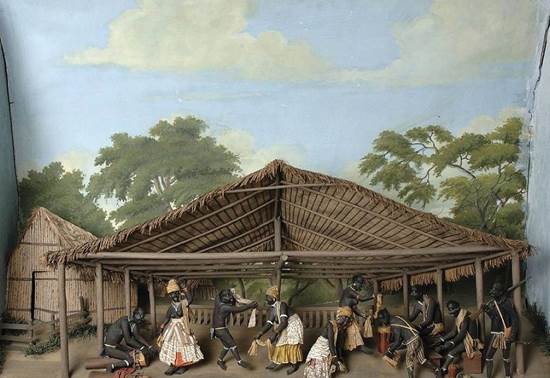 Wyndham’s note reveals an important fact: many of the flowers drawn in Lance’s work were not painted by him, but by a Dutch artist by the name of Gerrit Carl François Schouten (1779-1839). His relationship to Lance is not clear. However it seems probable that Schouten was engaged by Lance to paint plants for him. Schouten, a Surinamese born in Paramaribo and son of a Dutch government clerk and a local black woman, taught himself to paint and had become famous for his painted papier-maché dioramas of Surinamese life. These are flat boxes containing perspective, three-dimensional painted depictions of slave dances and city and plantation views among other themes. These dioramas, preserved today at Amsterdam’s Rijksmuseum, form a significant source of historical and topographical information about Surinam in the early 19th century (Fig. 9-10).