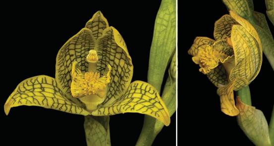 Figure 10 Chloraea septentrionalis. A - Flower, front view. B - Flower, side view.