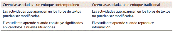 En relación con la dimensión de creencias sobre enseñanza, expresan contradicciones en los marcos de referencia, tal como muestra la Tabla 1.