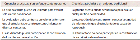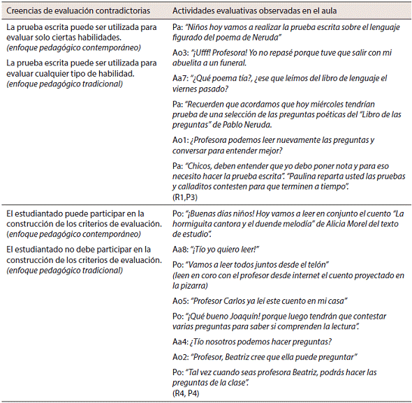 Relación de creencias evaluativas contradictorias con prácticas de aula