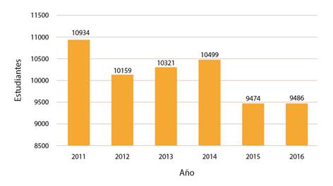 Figura 1: Total de matrícula de estudiantes de primer ingreso del año 2011 al 2017