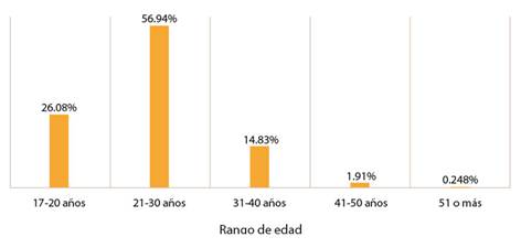 Figura 4: Porcentaje de estudiantes por rango de edad que conformaron la muestra en estudio