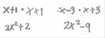 Procedimiento para la multiplicación de binomios, suma de monomios, racionalización y resolución de fórmulas notables.