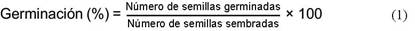 La germinación de las semillas se expresó al finalizar la evaluación como el porcentaje de semillas germinadas empleando la ecuación 1 de Al-Ansari y Ksiksi (2016).