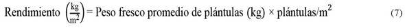El rendimiento de los microvegetales fue calculado empleando la ecuación 7.