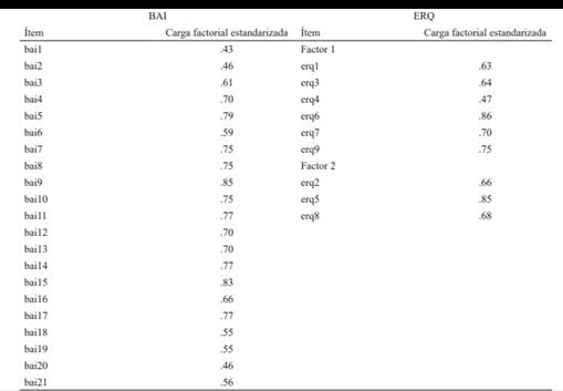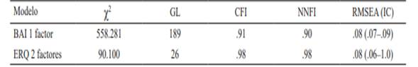 Tabla 2 Índices de bondad de ajuste de los modelos del BAI y del ERQ