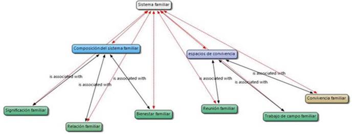En relación con el primer objetivo específico, asociado a identificar el sistema familiar en mujeres adultas de las comunas de Mulchén y Parral bajo el contexto rural, surge la categoría sistema familiar, representada en la Figura 2, la cual indaga la dimensión social de la mujer campesina con otros individuos dentro de un espacio en común. De ella se desprenden dos subcategorías: la primera, composición del sistema familiar, que atiende a los significados familiares mediadores de la relación familiar y que tiene como finalidad alcanzar el bienestar de sus miembros; atienden a relatos tales como: