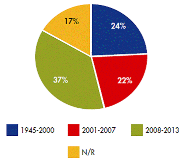 Con el fin de caracterizar la población, se muestra el Gráfico 1 y Gráfico 2. Según los datos arrojados, la población de estudio se caracteriza de la siguiente manera: de las cincuenta y cuatro empresas entrevistadas pertenecientes al sector de muebles, se observa que el mayor grupo de ellas se centra en las que son fabricantes, con un 67%, seguido de las que se dedican al comercio y, por último, proveedores. Por su parte, a nivel general, las organizaciones que actualmente pertenecen a este clúster fueron creadas, en su mayoría, recientemente, ya que del 2001 al 2013 fueron creadas el 59% de ellas, y las que tienen más antigüedad equivalen al 24%.