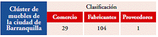 Se lograron identificar teóricamente que los factores determinantes del clúster son los siguientes: intensidad competitiva, existencia de un entorno local positivo, presencia de instituciones de apoyo, existencia de confianza, esfuerzo conjunto con los autores, cooperación empresarial, localización, experiencia de compra, calidad, innovación y buenas prácticas, los cuales en su mayoría se encuentran presentes en el clúster. En cuanto al desempeño, este fue de aproximadamente del 70% para el sector de muebles de la Ciudad de Barranquilla, lo cual debe analizarse a la luz de que el clúster está en proceso de desarrollo y solo tiene cinco años de existencia.