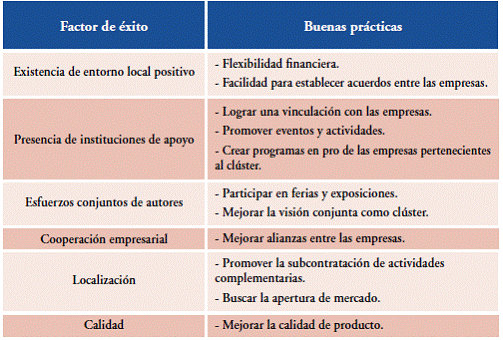 En el caso del clúster bajo estudio los factores más relevantes fueron: calidad, localización, buenas prácticas, cooperación empresarial y la existencia de un entorno local positivo