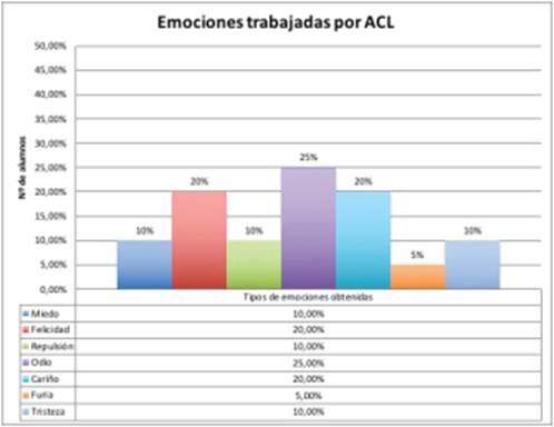 Los resultados de las emociones expuestas por los alumnos fueron comparadas con las que Goleman (1996) clasificó y que sirvió para que los discentes entendieran la importancia de las emociones en el entorno diario, tanto laboral como personal. La clasificación que Goleman propuso se resumía en dos grandes apartados donde incluirlas. Por un lado, estarían las emociones básicas o primarias, que vienen marcadas por una expresión facial. Existe cierta polémica para llegar a un entendimiento en su clasificación, pero normalmente se suele usar la de alegría, tristeza, miedo, asco e ira. Por otro lado, se tendrían las emociones secundarias o complejas, ya que surgen de las primarias y no presentan expresiones faciales, como pueden ser satisfacción, pena, terror, repulsión o furia, respectivamente.