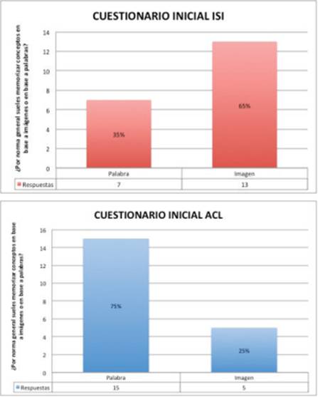 Con los datos obtenidos de los cuestionarios iniciales (CI) rellenados por los alumnos del ISI y ACL, fue posible realizar el análisis para su clasificación, de la cual se dará cuenta en el apartado de resultados.