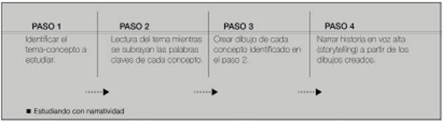 En su exposición en el aula, marcó los pasos de todo el temario que debía preparar para un próximo examen y señaló que la síntesis de los conceptos en ideogramas le sirvió para recordar todos los puntos por desarrollar el día de la prueba. Explicación transcrita de ISI16: