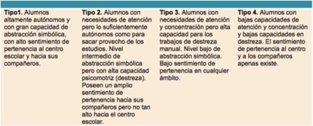 De la primera fase de investigación se obtuvo de los CI una clasificación de los alumnos dividida en cuatro estadios, los cuales sirvieron para mostrar especial atención en aquellos que denotaban mayor dificultad para adquirir los conocimientos necesarios (Tabla 4).