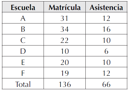 Tabla 1: Matriculados por escuela a los talleres del proyecto FAM y asistencia real