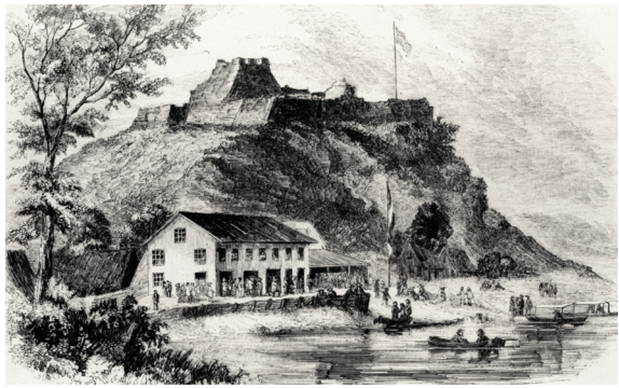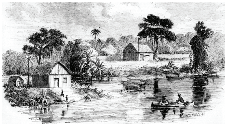 En esa desembocadura había un rancho en la ribera izquierda, que el botero cartaginés Francisco Alvarado Mora -residente en la ribera opuesta del Sarapiquí- alquilaba como albergue a los viajeros que deseaban ingresar a Costa Rica (Figura 5). Por su parte, en el territorio nicaragüense hacía lo propio el alemán Wilhelm Hipp para los pasajeros de los vapores que transitaban por el río San Juan; como una curiosidad, en el hostal de Hipp había un asta con la bandera de EE. UU.