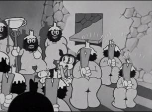 muy probable que el primer dibujo animado sonorizado de la historia con referencias masónicas sea “La iniciación de Bimbo” (Estados Unidos, 1931)20, emisión de la serie de cortometrajes unitarios llamados Talkartoons y que tiene como protagonista a Bimbo, quien en algunas producciones de los estudios Fleischer aparece como novio de la famosa Betty Boop (imagen 3)21.