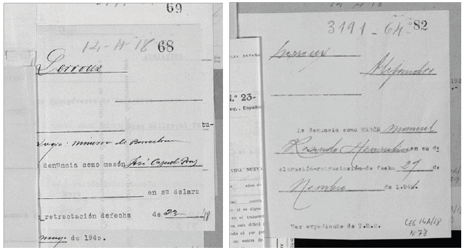 After the Spanish Civil War, Alejandro Lerroux, collaborated with General Franco’s regime. In order to return to Spain from exile, he informed against at least seventeen fellow Freemasons in 1940, as revealed by documents from the Centro de Documentos de la Memoria Histórica. where he denounced an additional 19 individuals as Freemasons to Franco’s Tribunal Against Freemasons and Communists. These were61: