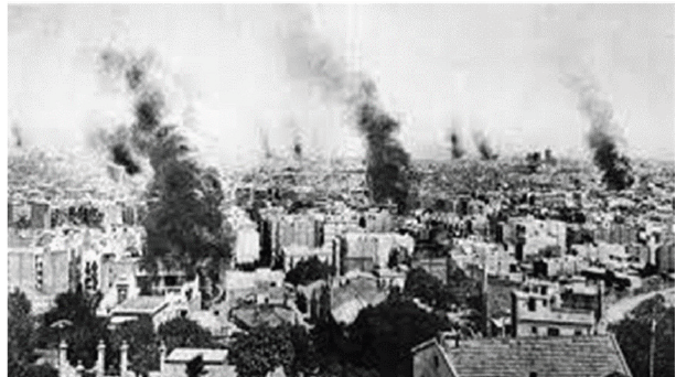The Church reported that 721 million worth of deeds were stolen during the Tragic Week, highlighting that this wealth had not benefited the poor, as noted by Humanité. The inclusion of photographs in the historical account adds a visual dimension to understanding the significance of these events for those who experienced them. This underscores the importance of critically assessing photographs as valuable historical sources, considering them as contemporary images that convey meaning through iconography, semiotics, and photographic techniques to the public.
