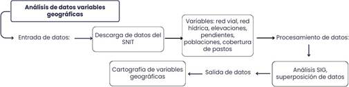 Fig. 2 Flujo de procesos utilizados para la identificación de variables geográficas presentes en la zona de amortiguamiento del Parque Internacional La Amistad, durante los años 2012-2020.