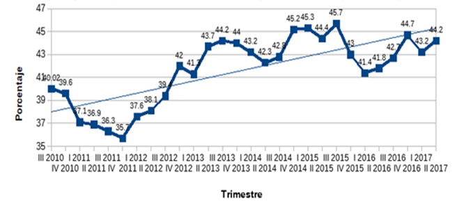 El debilitamiento progresivo de la base tributaria ha acarreado decisiones y mecanismos de búsqueda de financiamiento de la deuda del Estado, pues la atracción de IED, durante el PHN, aplica condiciones especiales las cuales favorecen que los grupos económicos más dinámicos, los vinculados al sector exportador, sean los que menos aportan al país porque su contribución se reduce a la seguridad social y a la generación de empleo.