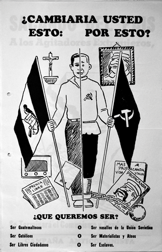 Mediante sus comunicaciones, el arzobispo Rossell esbozó un discurso que presentó al comunismo como la antítesis del catolicismo y de la nación guatemalteca. En su planteamiento, la adscripción católica y la identidad nacional se fusionaban. Esta misma asociación entre catolicismo, nacionalismo y anti-comunismo se planteó en medios liberacionistas, como los producidos por el Comité de Estudiantes Universitarios Anticomunistas en Guatemala y en el exilio. En ellos, el argumento de la defensa de la religión frente al comunismo se volvió un imperativo. Ser, a la vez, católico y comunista, así como ser guatemalteco y comunista al mismo tiempo era imposible según este discurso. De hecho, Castillo Armas llamó “Cruzada” de carácter “Católica y Nacional” a la incursión del movimiento liberacionista y justificó la legitimidad de la “Liberación” con un discurso de defensa de la Iglesia y la fe católica. Se refirió al anticomunismo como un deber cristiano7.