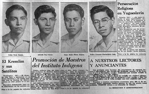Se argumentaba que nadie mejor que los propios maestros indígenas podrían “conocer el alma indígena y comprender los problemas de esa raza que está como encerrada tras un muro infranqueable de costumbres profundamente arraigadas y de un atavismo milenario” (VERBUM, 16 de noviembre de 1952). Como indiqué, este proyecto se concretó con la creación del Instituto Indígena Guatemalteco en 1945, para varones (que cerró a los pocos años y reabrió en 1955) y del Instituto Indígena Nuestra Señora del Socorro en 1954, para mujeres.