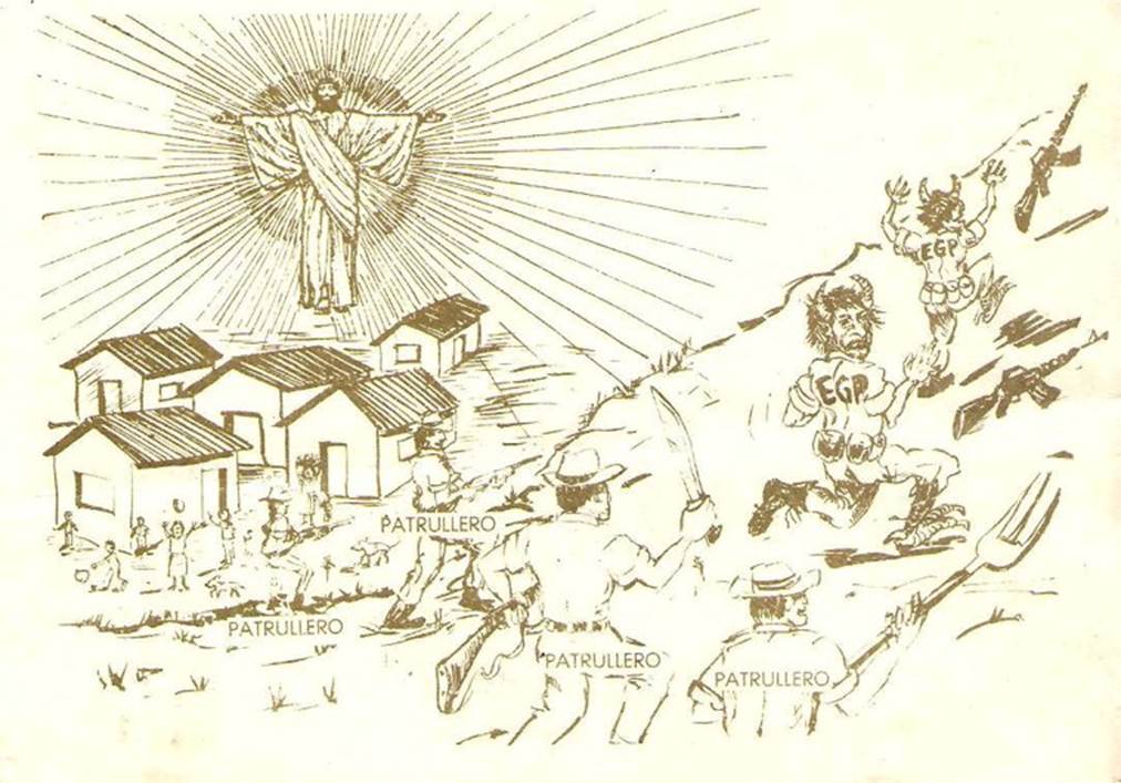 El testimonio de Tomás Guzaro ofrece un ejemplo. Guzaro fue un pastor evangélico que dirigió la salida, y entrega al ejército, de 287 personas que se encontraban en territorio bajo control de la guerrilla. La situación de los pobla-dores en estos territorios era crítica pues el ejército destruía cosechas y casas, y las personas padecían de hambre y morían (Falla 2018). Una vez reasenta-dos en una nueva aldea creada por el ejército en el municipio de Nebaj, Guzaro fue nombrado alcalde auxiliar con apoyo del comandante militar de la zona (Guzaro y McComb 2019). Y se constituyó en intermediario entre su comuni-dad y los militares, y entre su comunidad y las organizaciones y misiones evangélicas que canalizaban la ayuda humanitaria. Guzaro, junto con otro pastor, colaboraron con el ejército para difundir mensajes por avioneta y convencer a miles de refugiados en las montañas de entregarse al ejército (Ibíd). Guzaro recibía protección del ejército y organizó la patrulla de autodefensa civil de la aldea, la cual guió al ejército en el combate a la guerrilla en la zona (Ibíd).
