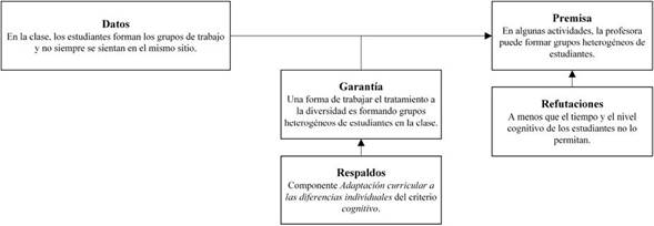 Figura 4 Argumento práctico en la valoración con el componente Adaptación curricular a las diferencias individuales.