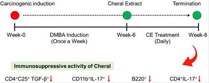Figure 1 A schematic picture showed how cheral extract attenuates the mouse immune system to a normal level after being induced by carcinogen, DMBA.