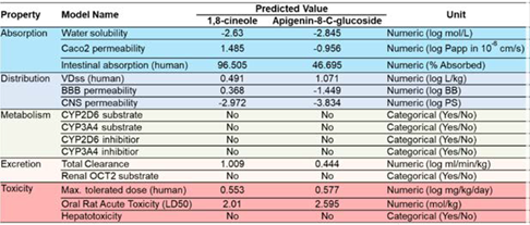 Compound-protein interaction analysis was conducted using the STRING database (https://string-db.org/). Target protein prediction was performed using the SwissTargetPrediction web server (http://www. swisstargetprediction.ch/). For Absorption, Distribution, Metabolism, Excretion, and Toxicity profiling, the pkCSM web server was utilized (https://biosig.lab.uq.edu.au/pkcsm/). The BD Cell Quest ProTM software examined the flow cytometry data. For the statistical analysis, SPSS version 20 for Windows was used. A one-way ANOVA test with a value α = 5% was performed. The Tukey Honestly Significant Difference (HSD) test was employed to determine significantly level of treatment group.