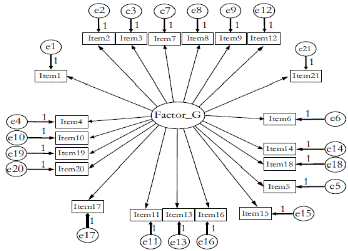 Análisis factorial exploratorio (AFE). Se utilizó el método de análisis factorial exploratorio para evaluar el ajuste de la escala y partir de ello para proponer un modelo unidimensional a corroborar mediante el AFC. Se manejó el método de mínimos cuadrados generalizados, debido a que utiliza una prueba de bondad de ajuste para evaluar si el modelo factorial se ajusta a las correlaciones o covarianzas obtenidas en la matriz de análisis, además de que no exige el cumplimiento del supuesto de normalidad para poderse ejecutar (Ximénez, 2010).