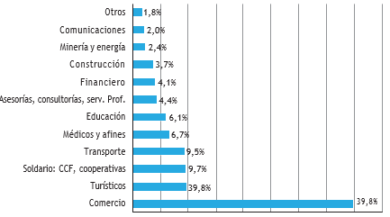 Dentro de los subsectores de servicios, la figura 4 muestra que el comercio con el 39,8% es el más representativo, seguido de empresas turísticas, solidarias y de transporte.