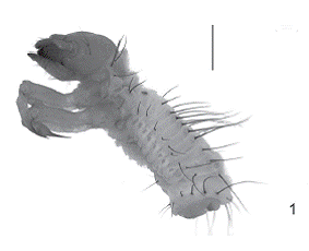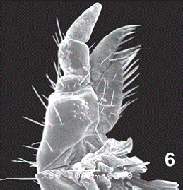 Setal Pattern 2° and 3° instars: 2-3 HPA; 3-4 PSL; 0 MSD; 2 MSL; 1 MTD; 2 MTL; 1 TM; 1 TL; 1 AV9; 16-18 AR.